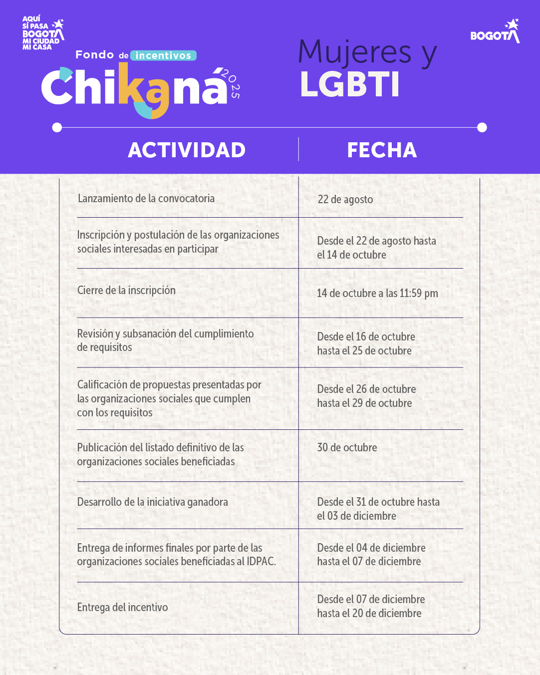 No podrán participar las organizaciones sociales beneficiadas de otras convocatorias del IDPAC durante la vigencia 2024