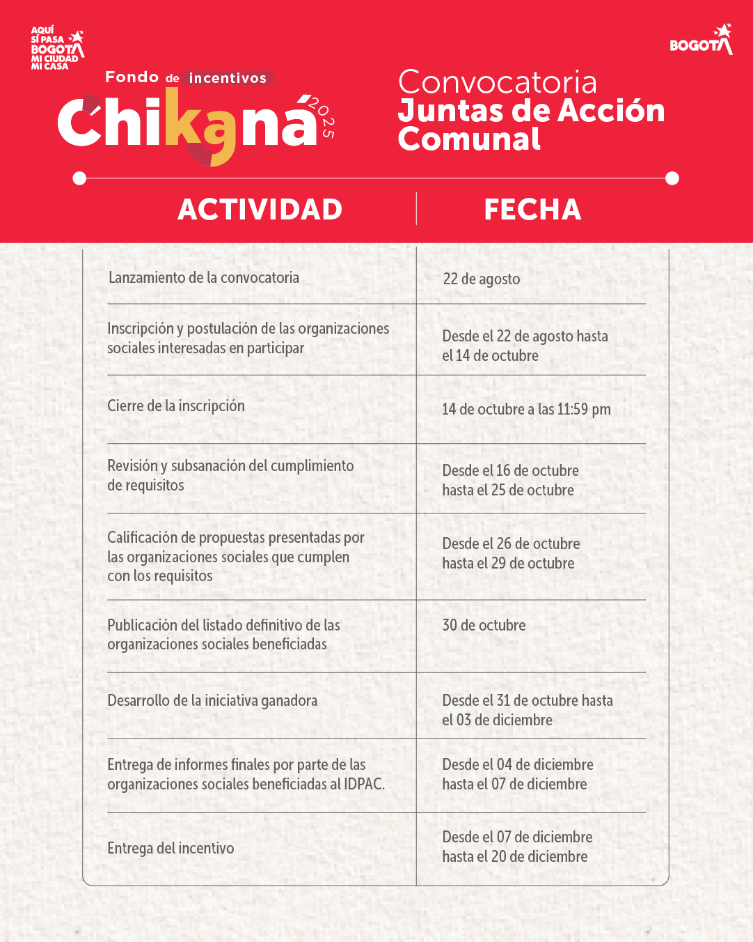 No podrán participar las organizaciones comunales beneficiadas de otras convocatorias del IDPAC durante la vigencia 2024