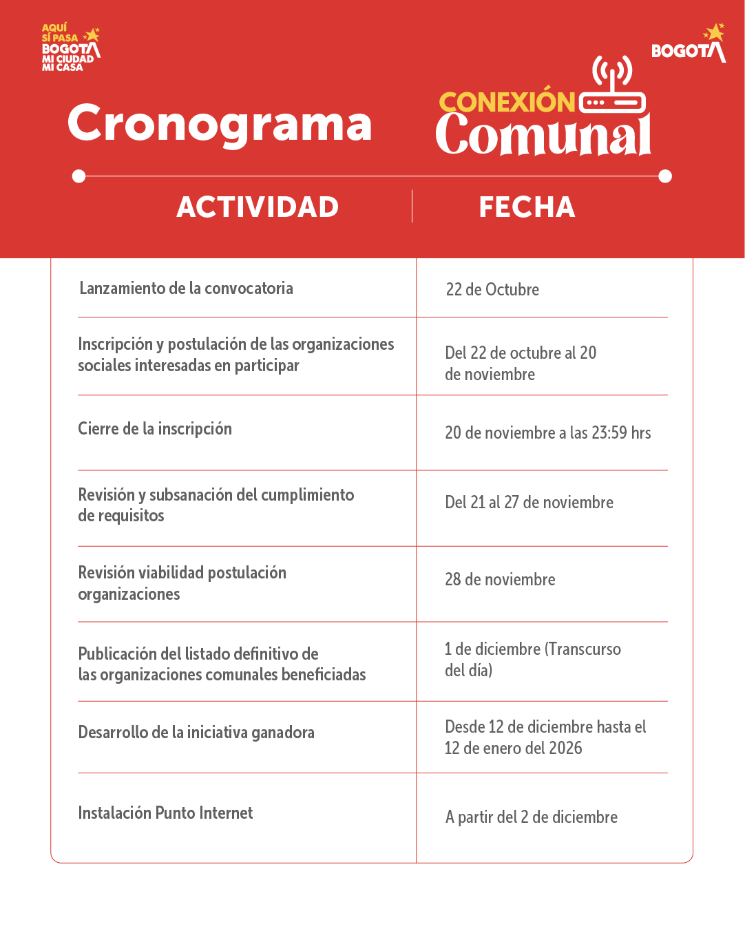 Gracias a un convenio suscrito con la Empresa de Telecomunicaciones de Bogotá (ETB), esta iniciativa beneficiará a 650 salones comunales, tanto públicos como privados, con conectividad gratuita de 500 megas. Este servicio permitirá que las Juntas de Acción Comunal cuenten con mejores condiciones para el desarrollo de sus actividades, la comunicación con la ciudadanía y la gestión de sus procesos internos.
